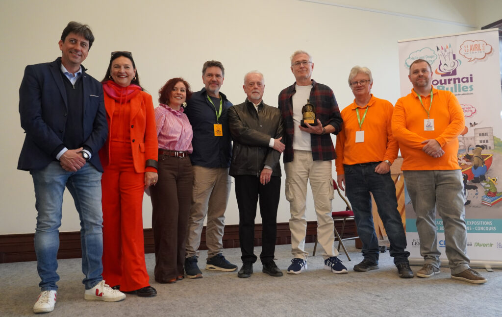 Lors de l’édition 2025, le prix Philippe Delaby a été remis à Enrico Marini en présence de Jean Dufaux, son ami et scénariste, Jérémy, son ancien coloriste et repreneur de la série Murena et Valérie Truffin, son épouse.
